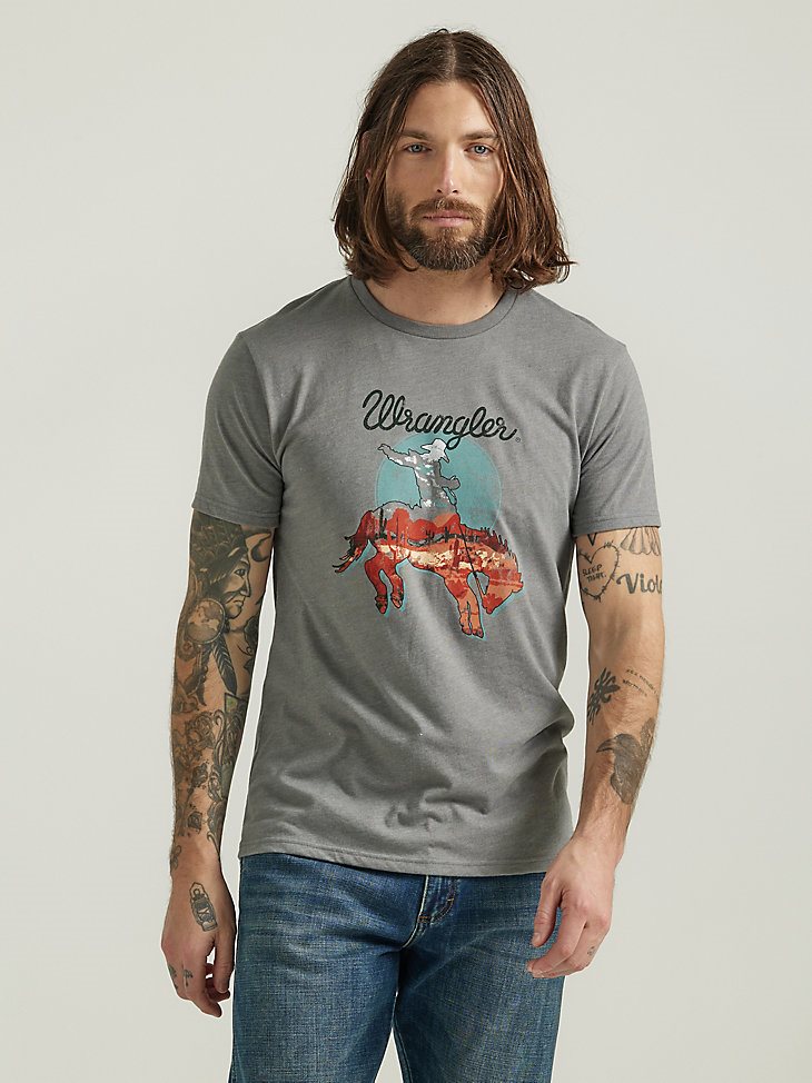 Experience the untamed spirit of the west with our Wrangler? desert bronco t-shirt. Made of a premium cotton blend, this regular fit tee captures the essence of adventure and ruggedness of the open range in its design. As the perfect addition to any wardrobe, this classic crewneck can show off your appreciation for the Western lifestyle while maintaining a casual vibe. Pair it with your favorite Wrangler jeans or shorts for a look you can wear anywhere.
